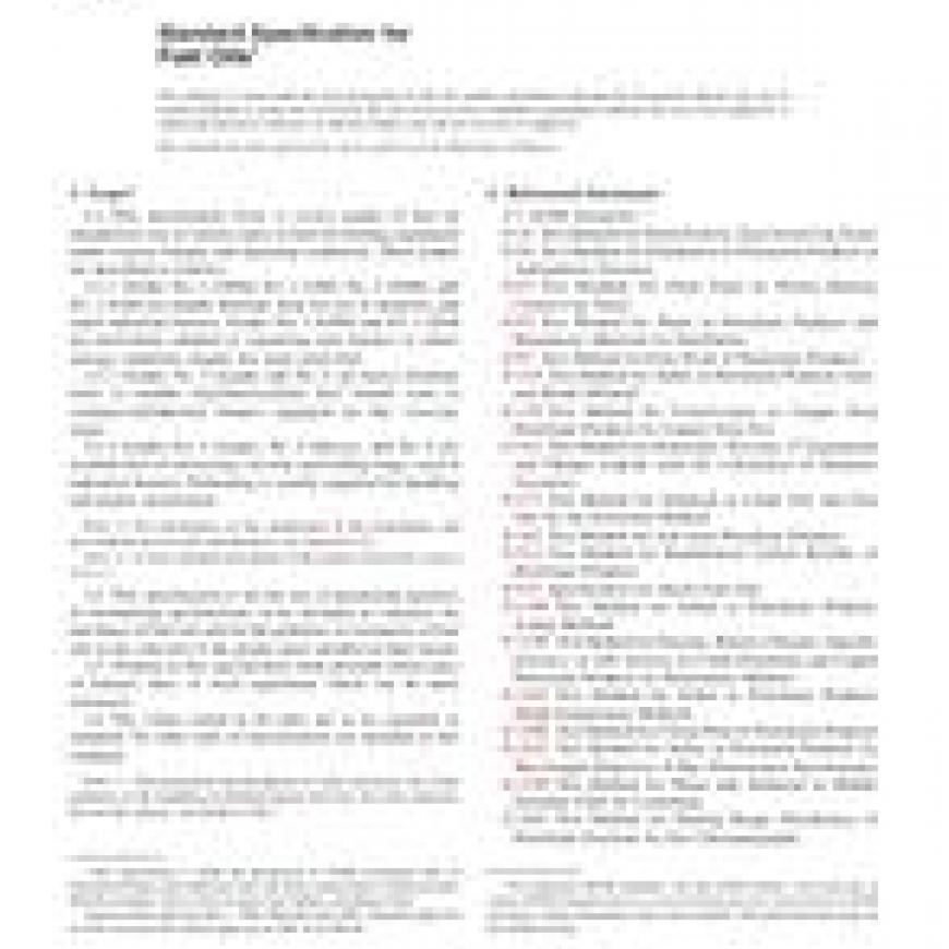 1.1 This specification (Note 1) covers grades of fuel oil intended for use in various types of fuel-oil-burning equipment under various climatic and operating conditions. These grades are described as follows: