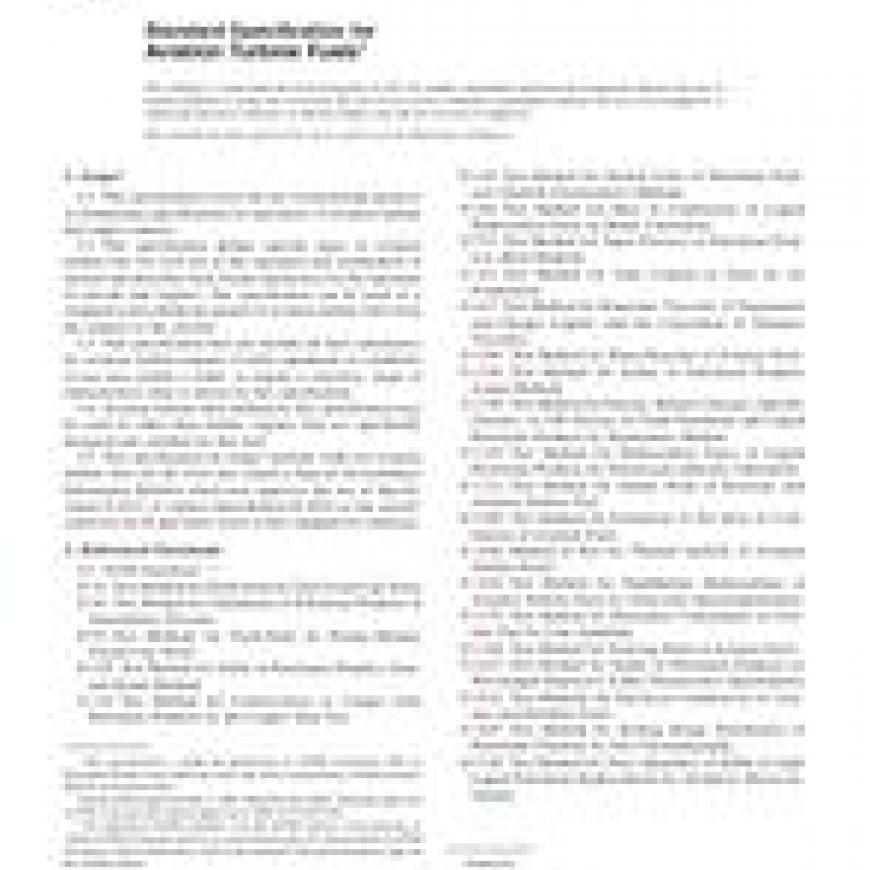 1.2 This specification defines specific types of aviation turbine fuel for civil use in the operation and certification of aircraft and describes fuels found satisfactory for the operation of aircraft and engines. The specification can be used as a standard in describing the quality of aviation turbine fuels from the refinery to the aircraft.