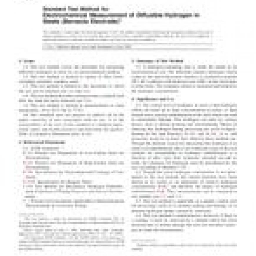 1.1 This test method covers the procedure for measuring diffusible hydrogen in steels by an electrochemical method.