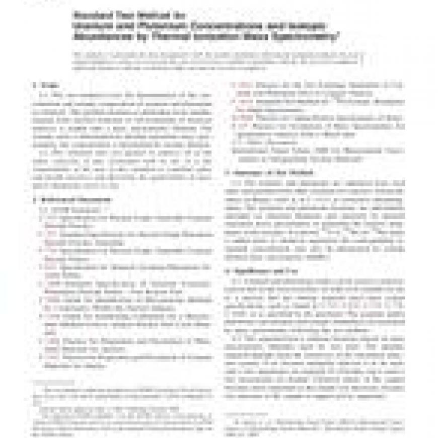 ASTM C1625-05 Standard Test Method for Uranium and Plutonium Concentrations and Isotopic Abundances by Thermal Ionization Mass Spectrometry