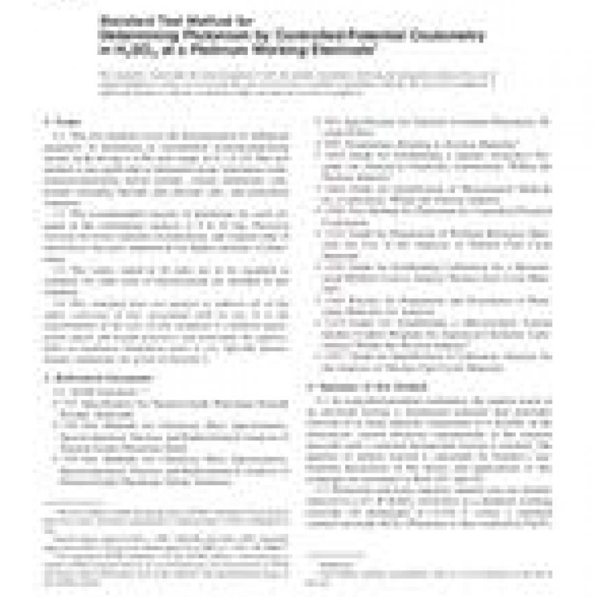 ASTM C1165-90(2005) Standard Test Method for Determining Plutonium by Controlled-Potential Coulometry in H2SO4 at a Platinum Working Electrode