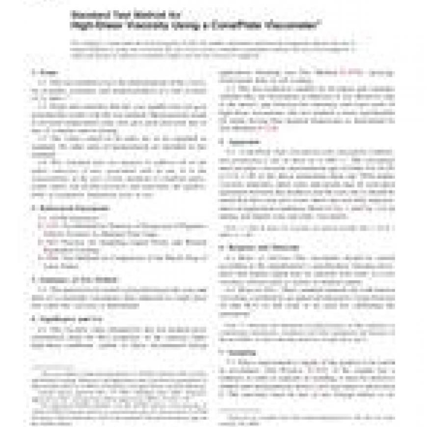 ASTM D4287-00(2005) Standard Test Method for High-Shear Viscosity Using a Cone/Plate Viscometer