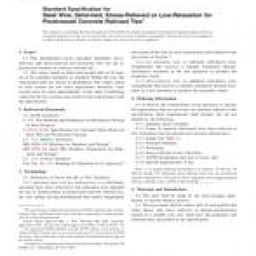 1.1 This specification covers uncoated, deformed, stress-relieved, and stress-relieved low-relaxation wire for use as prestressed tendons in concrete railroad ties.