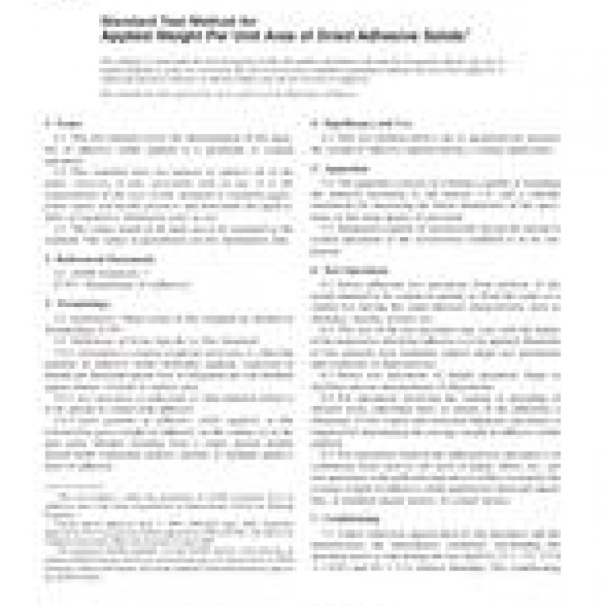 ASTM D898-05 Standard Test Method for Applied Weight Per Unit Area of Dried Adhesive Solids (Withdrawn 2006)