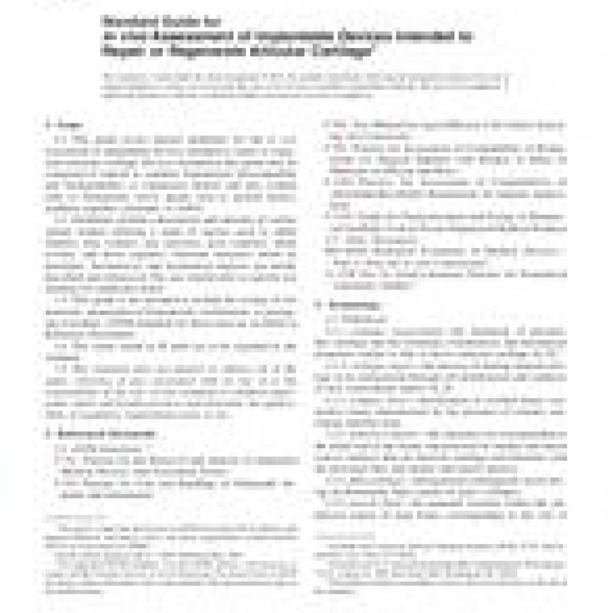 ASTM F2451-05 Standard Guide for in vivo Assessment of Implantable Devices Intended to Repair or Regenerate Articular Cartilage
