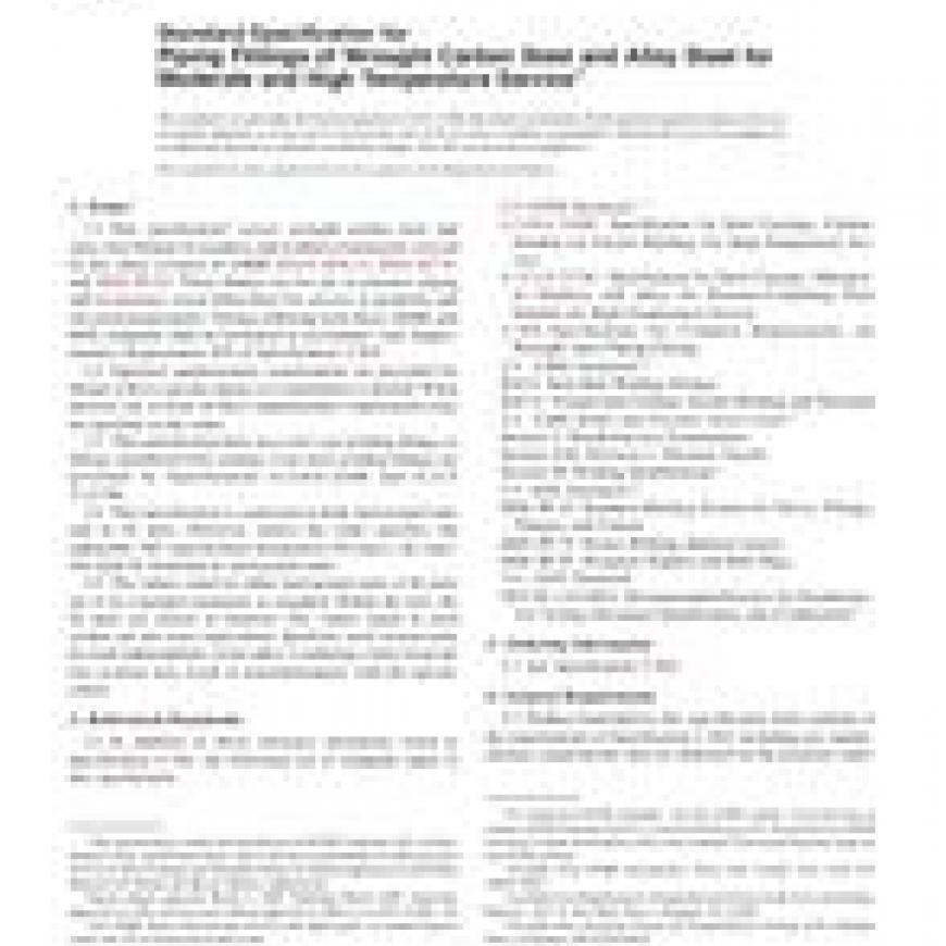 1.1 This specification covers wrought carbon steel and alloy steel fittings of seamless and welded construction covered by the latest revision of ASME B16.9, B16.11, B16.28, MSS SP-79, and MSS SP-95. These fittings are for use in pressure piping and in pressure vessel fabrication for service at moderate and elevated temperatures. Fittings differing from these ASME and MSS standards shall be furnished in accordance with Supplementary Requirement S58 of Specification A960.