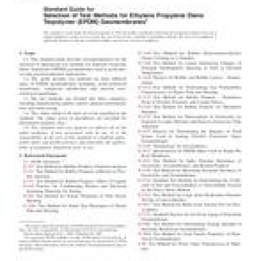 ASTM D7106-05 Standard Guide for Selection of Test Methods for Ethylene Propylene Diene Terpolymer (EPDM) Geomembranes
