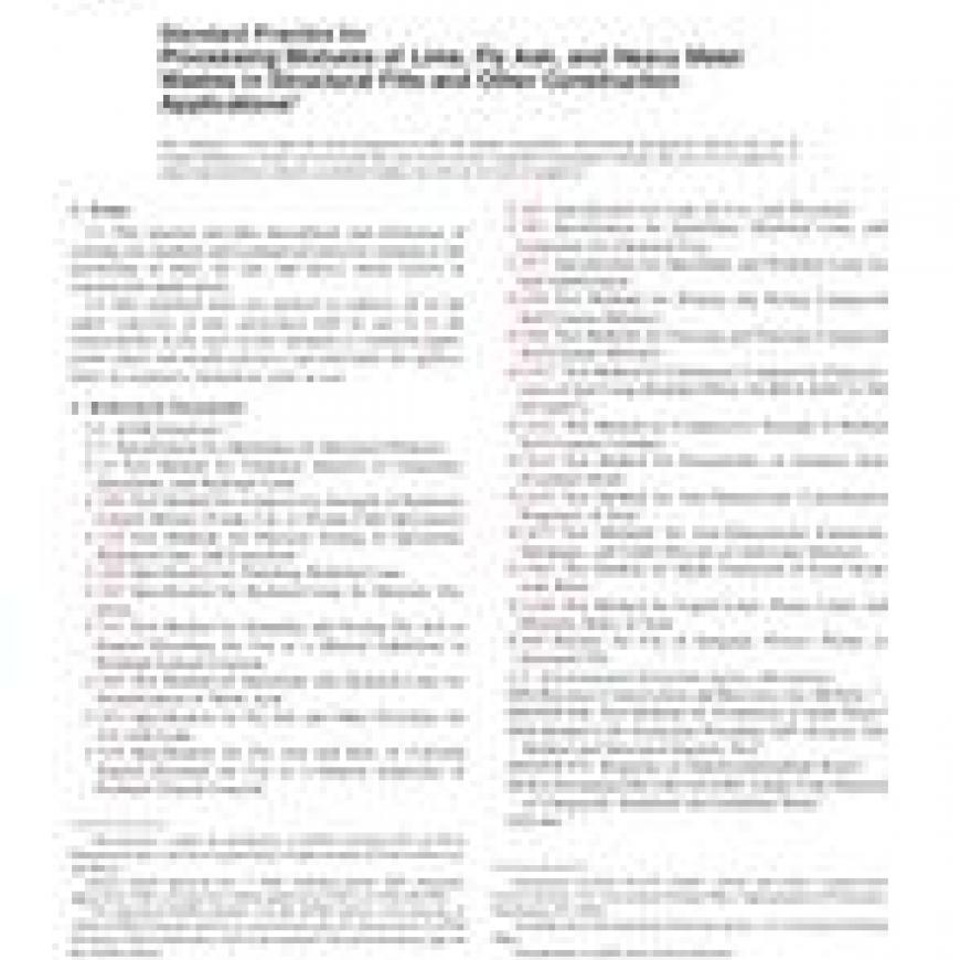 1.1 This practice provides descriptions and references of existing test methods and commercial practices relating to the processing of lime, fly ash, and heavy metal wastes in construction applications.