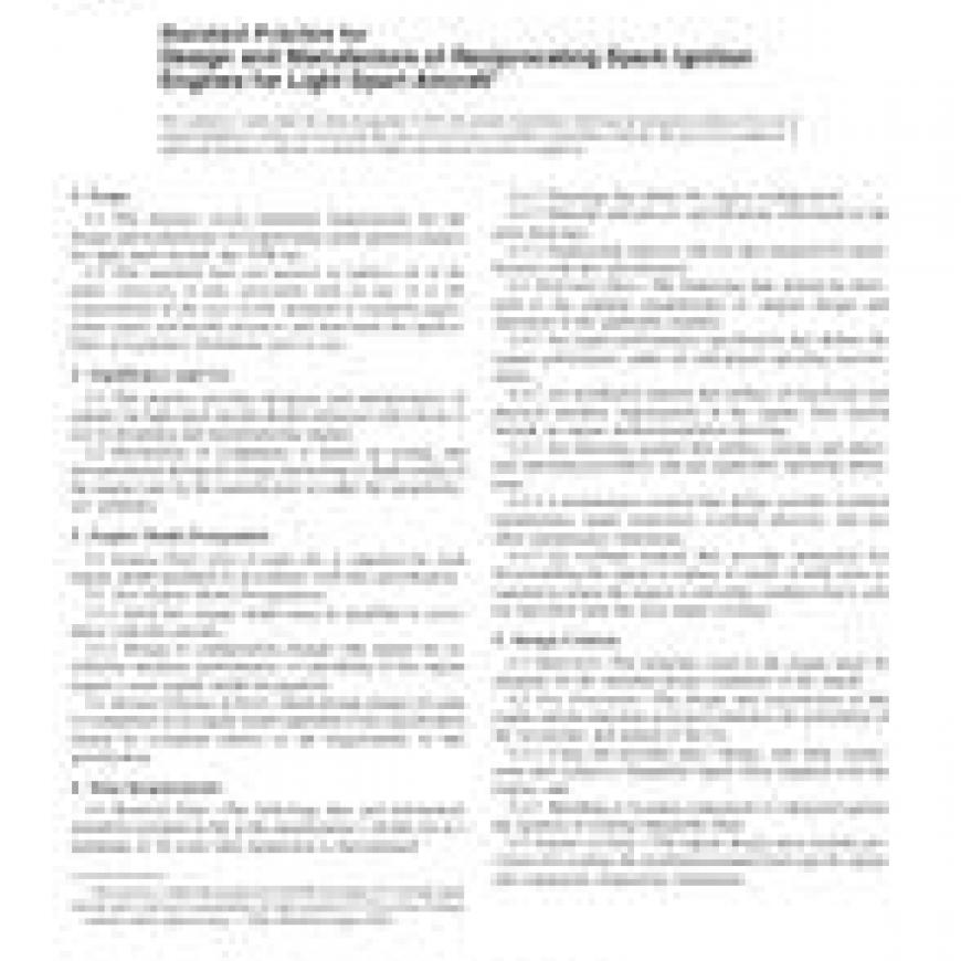 1.1 This practice covers minimum requirements for the design and manufacture of reciprocating spark ignition engines for light sport aircraft, day VFR use.