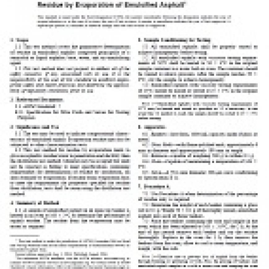 ASTM D6934-04 Standard Test Method for Residue by Evaporation of Emulsified Asphalt