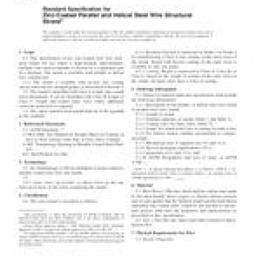 1.1 This specification covers zinc-coated steel wire structural strand, for use where a high-strength, high-modulus, multiple-wire tension member is desired as a component part of a structure. The strand is available with parallel or helical wire construction.
