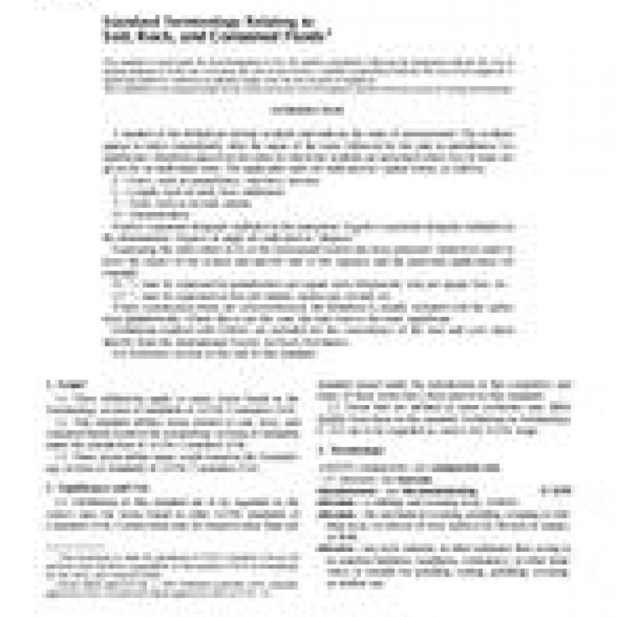 1.2 This standard defines terms related to soil, rock, and contained fluids found in the terminology sections of standards under the jurisdiction of ASTM Committee D18.