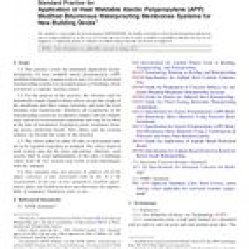 1.1 This practice covers the minimum application recommendations for heat weldable atactic polypropylene (APP) modified bituminous systems used as part of a new horizontal waterproofing system over occupied spaces of buildings where covered by a separate wearing course.