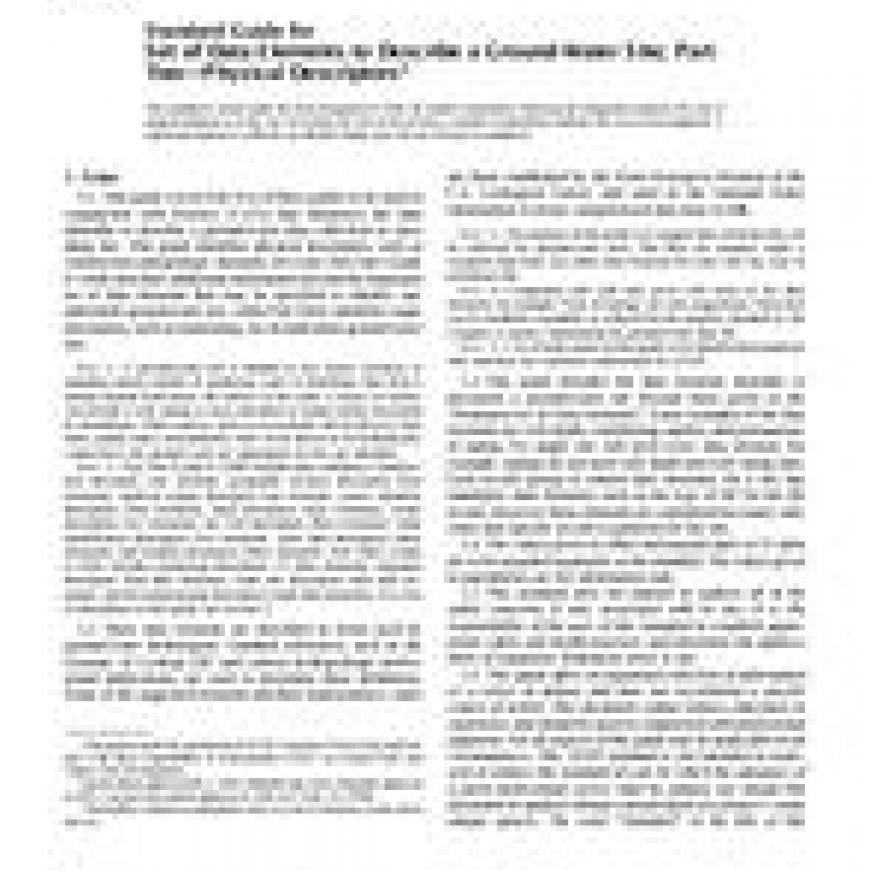 ASTM D5409-93(2004) Standard Guide for Set of Data Elements to Describe a Ground-Water Site; Part Two-Physical Descriptors