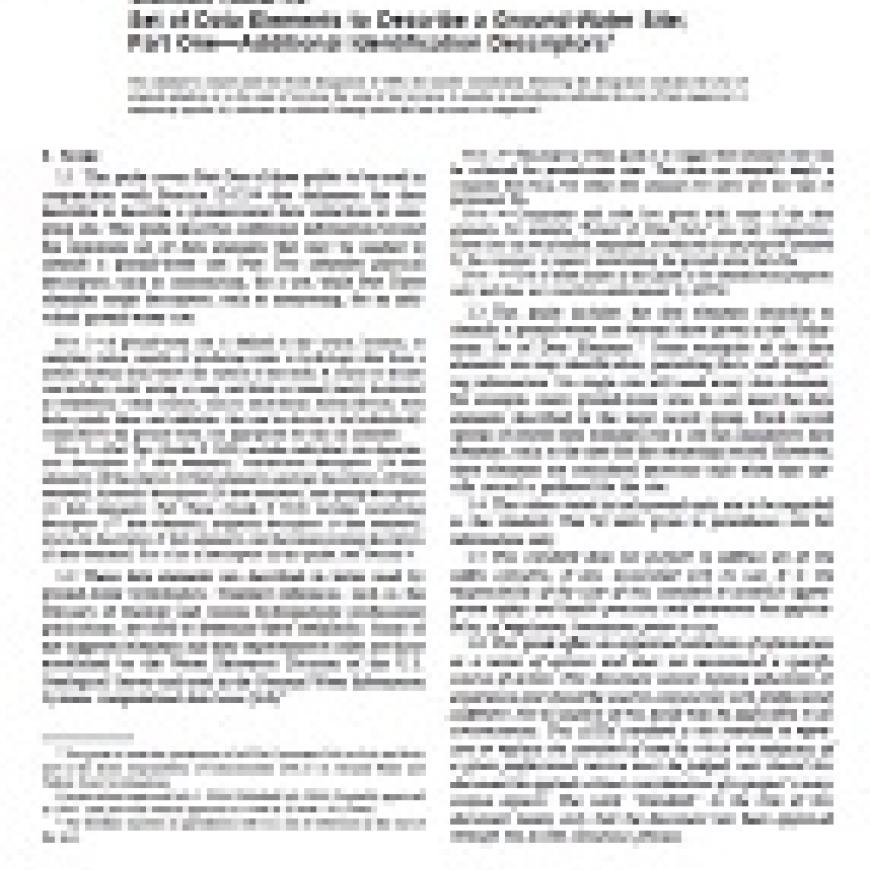 ASTM D5408-93(2004) Standard Guide for Set of Data Elements to Describe a Ground-Water Site; Part One-Additional Identification Descriptors