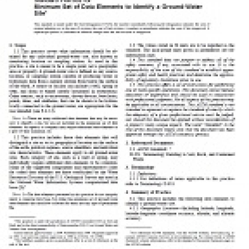 ASTM D5254-92(2004) Standard Practice for Minimum Set of Data Elements to Identify a Ground-Water Site