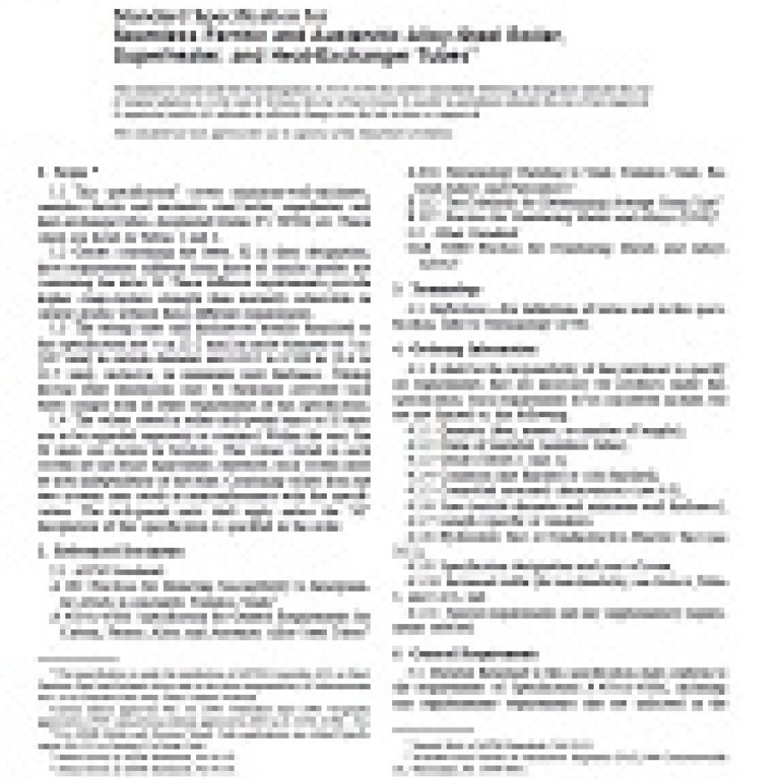 1.1 This specification covers minimum-wall-thickness, seamless ferritic and austenitic steel boiler, superheater, and heat-exchanger tubes, designated Grades T5, TP304, etc. These steels are listed in Table 1 and 2.