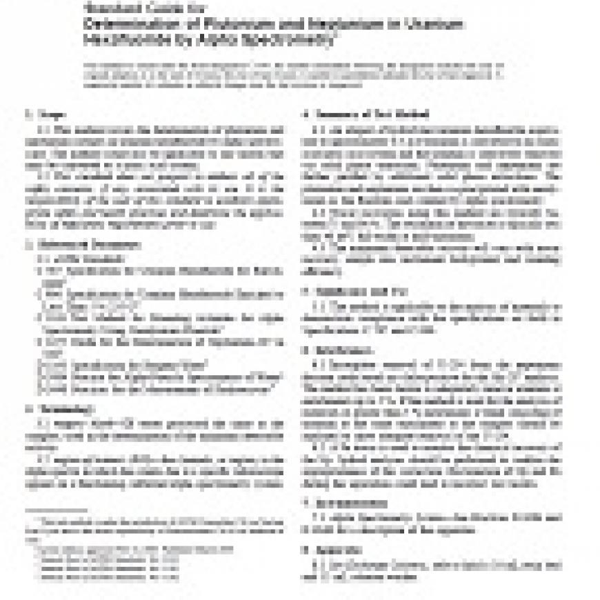 ASTM C1561-03 Standard Guide for Determination of Plutonium and Neptunium in Uranium Hexafluoride by Alpha Spectrometry