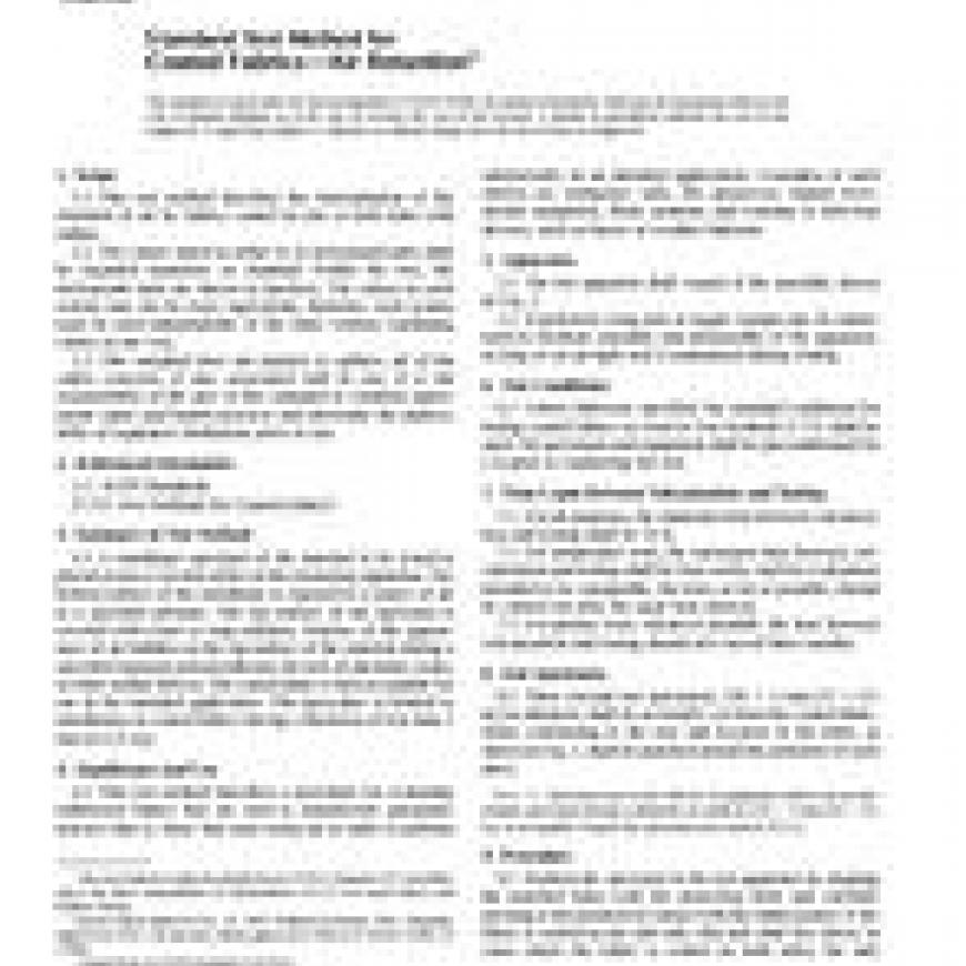 ASTM D5193/D5193M-93(2002) Standard Test Method for Coated Fabrics-Air Retention