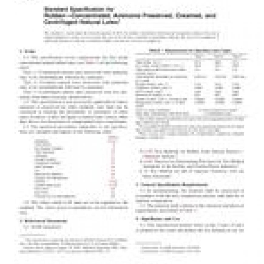 1.1 This specification covers requirements for first grade concentrated natural rubber latex (see Table 1) of the following types: