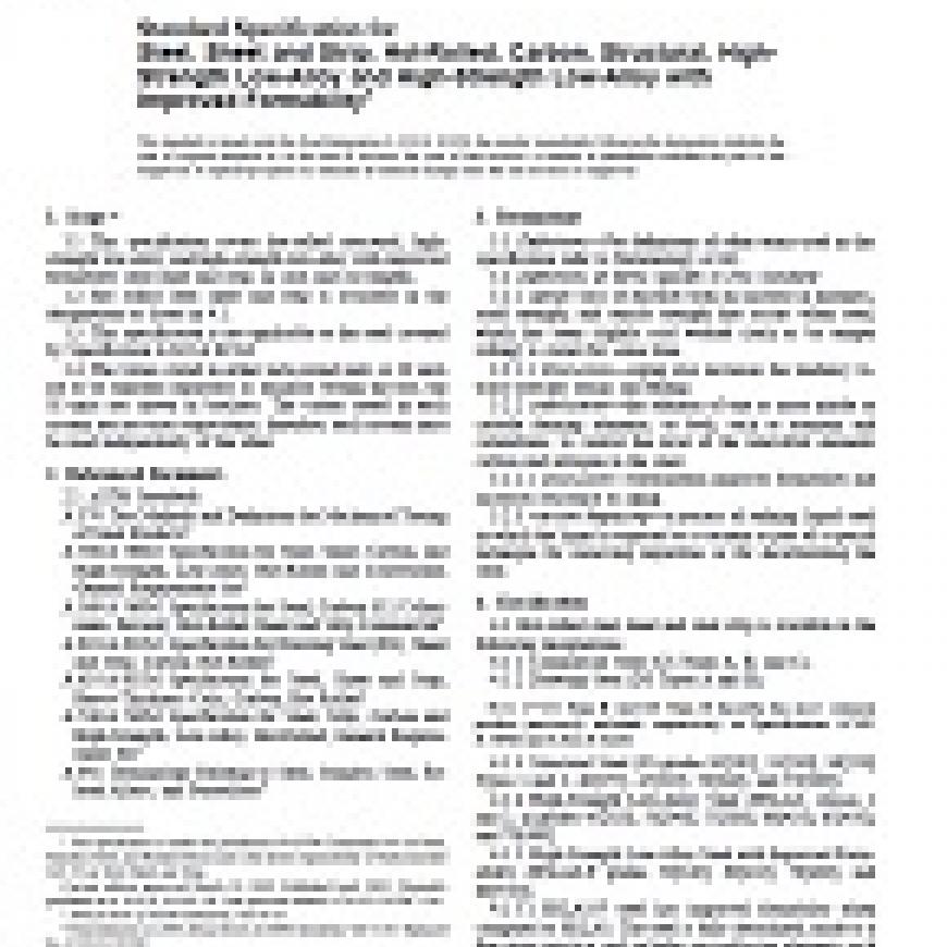 1.1 This specification covers hot-rolled structural, high strength-low alloy, and high-strength low-alloy with improved formability steel sheet and strip, in coils and cut lengths.