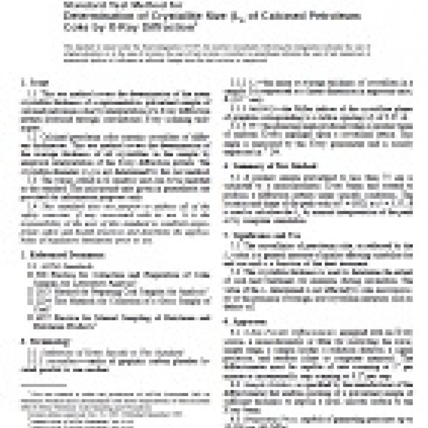1.2 Calcined petroleum coke contains crystallites of different thicknesses. This test method covers the determination of the average thickness of all crystallites in the sample by empirical interpretation of the X-ray diffraction pattern. The crystallite diameter ( La) is not determined by this test method.