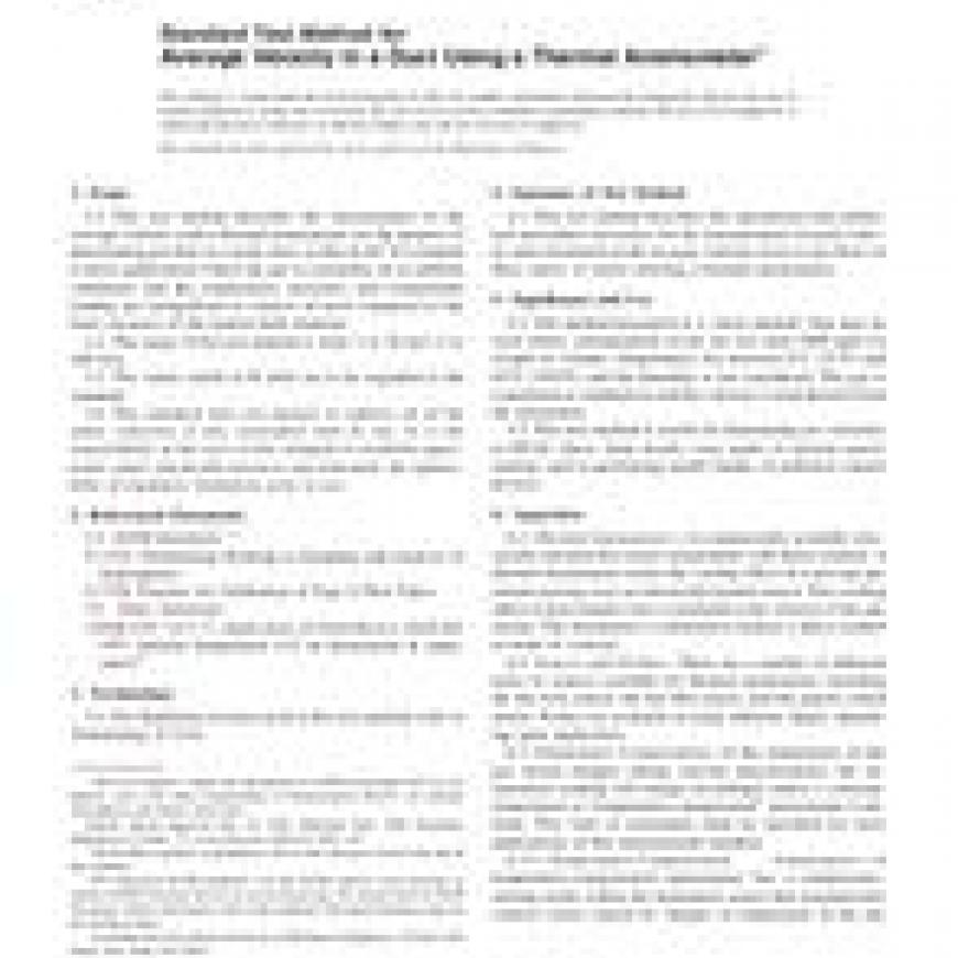 ASTM D3464-96(2001) Standard Test Method for Average Velocity in a Duct Using a Thermal Anemometer