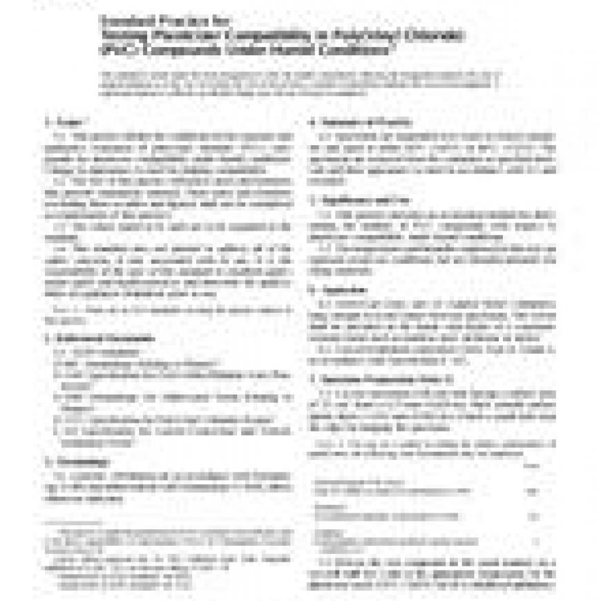 ASTM D2383-97(2001) Standard Practice for Testing Plasticizer Compatibility in Poly(Vinyl Chloride) (PVC) Compounds Under Humid Conditions
