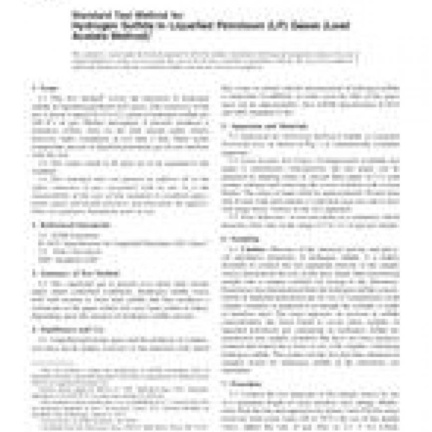ASTM D2420-91(2001) Standard Test Method for Hydrogen Sulfide In Liquefied Petroleum (LP) Gases (Lead Acetate Method)