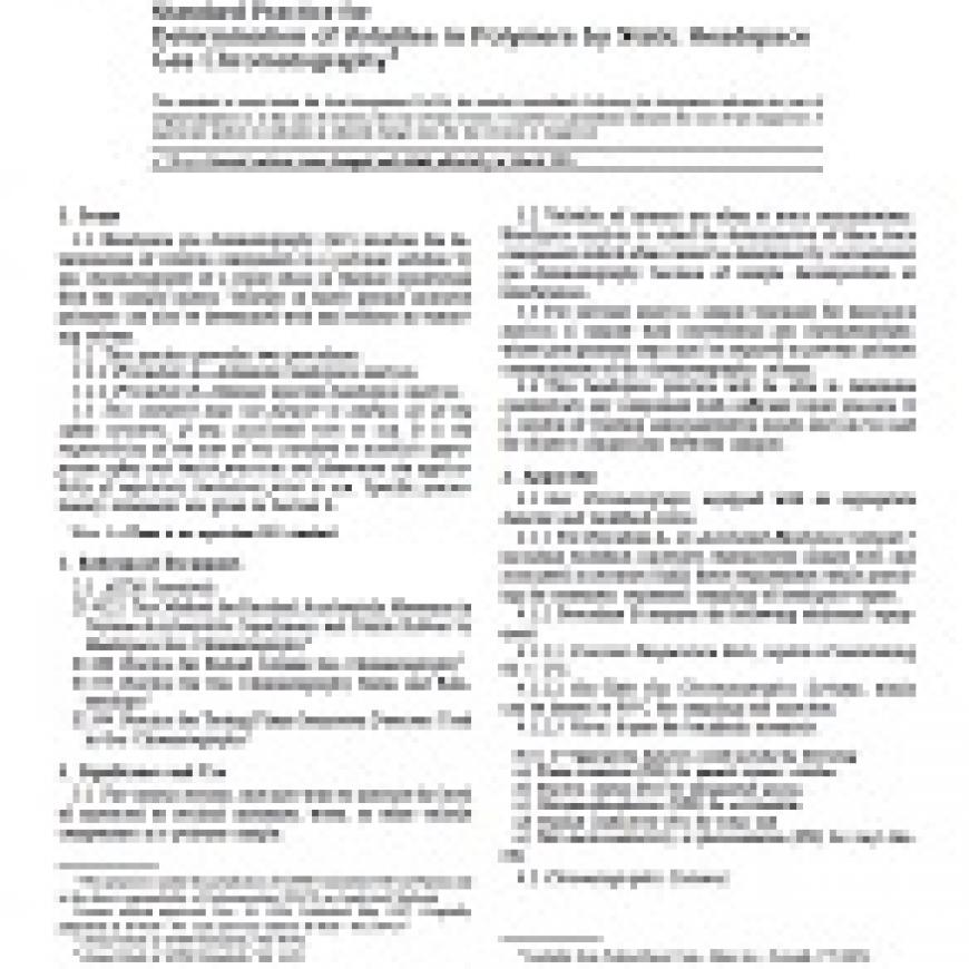 ASTM D4526-96(2001)e1 Standard Practice for Determination of Volatiles in Polymers by Static Headspace Gas Chromatography