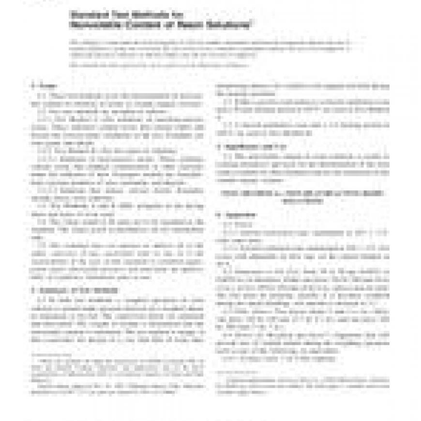 1.1 These test methods cover the determination of nonvolatile content of solutions of resins in volatile organic solvents.