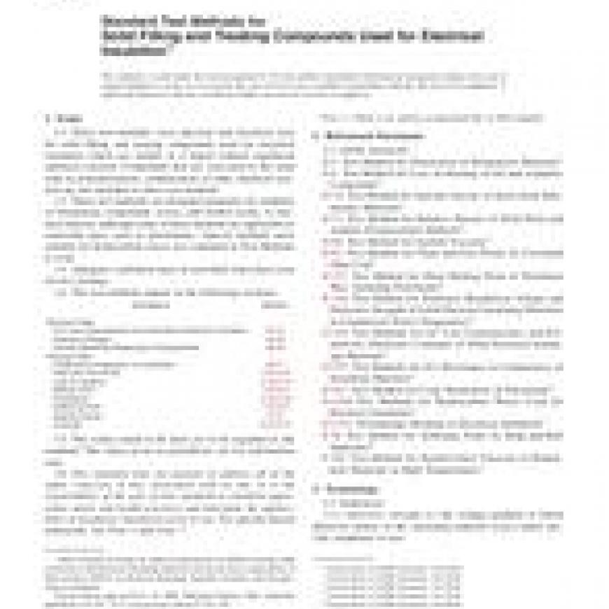 1.1 These test methods cover physical and electrical tests for solid filling and treating compounds used for electrical insulation which are fusible to a liquid without significant chemical reaction. Compounds that are converted to the solid state by polymerization, condensation, or other chemical reaction are not included in these test methods.