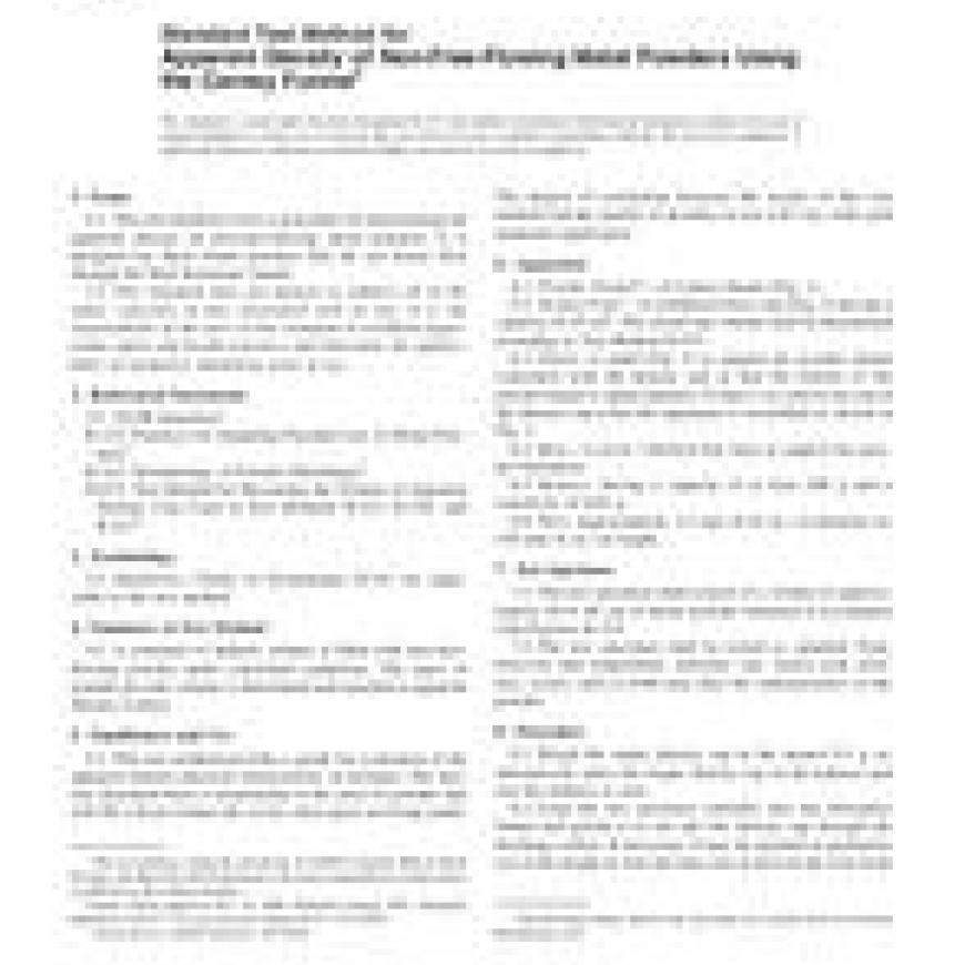 ASTM B417-00 Standard Test Method for Apparent Density of Non-Free-Flowing Metal Powders Using the Carney Funnel
