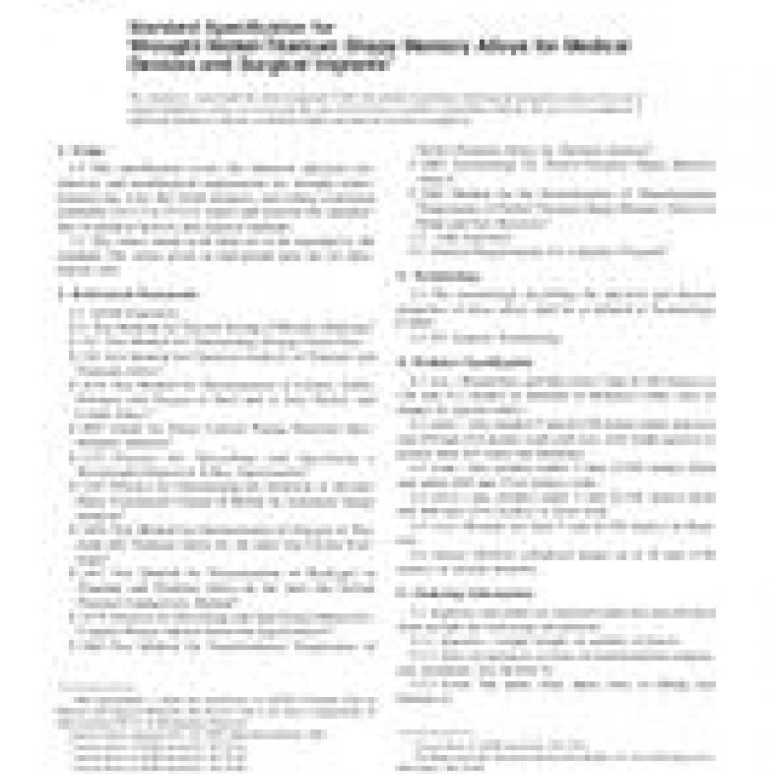 ASTM F2063-00 Standard Specification for Wrought Nickel-Titanium Shape Memory Alloys for Medical Devices and Surgical Implants