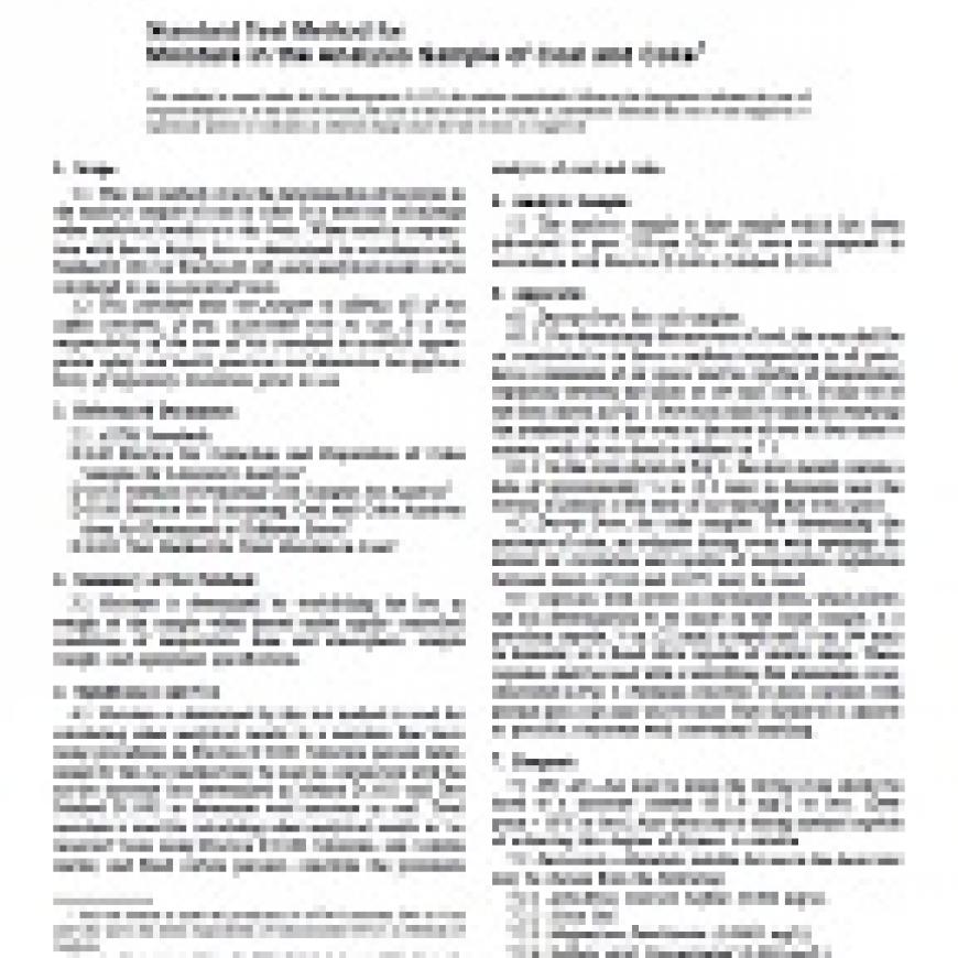 ASTM D3173-00 Standard Test Method for Moisture in the Analysis Sample of Coal and Coke