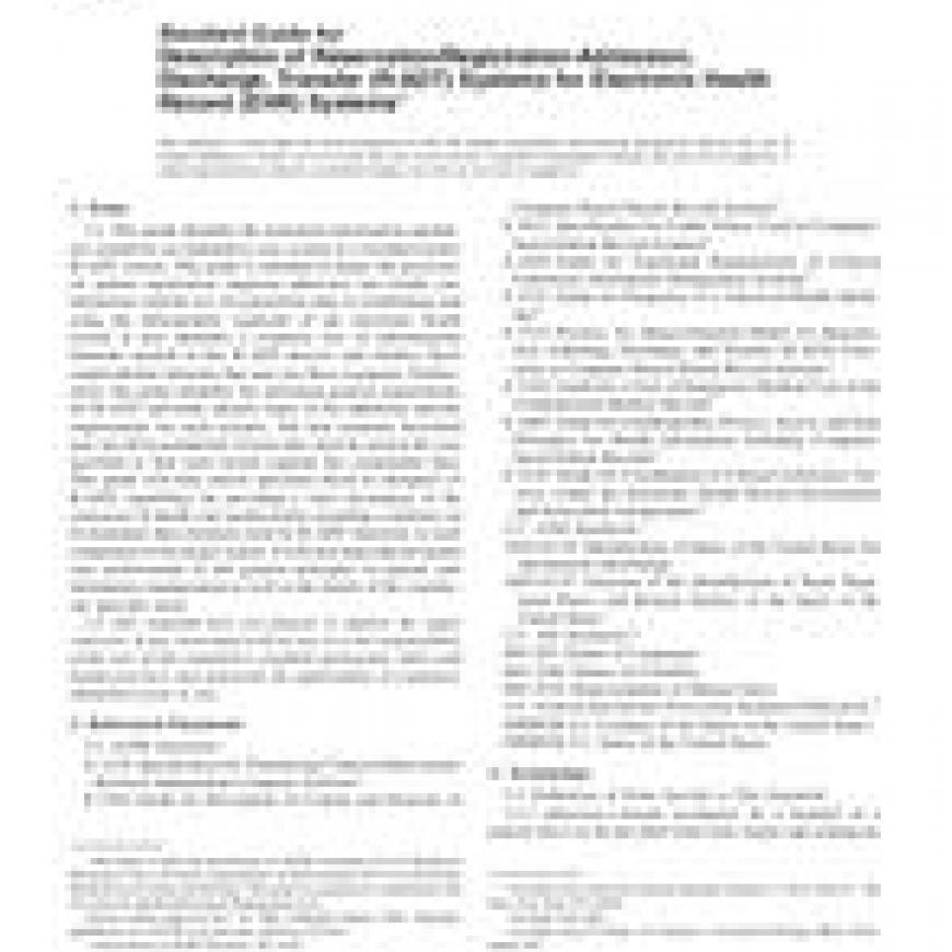 ASTM E1239-00 Standard Guide for Description of Reservation/Registration-Admission, Discharge, Transfer (R-ADT) Systems for Electronic Health Record (EHR) Systems