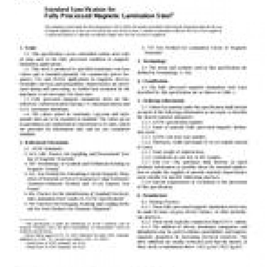 1.1 This specification covers cold-rolled carbon steel coils or strip used in the fully processed condition in magnetic lamination applications.
