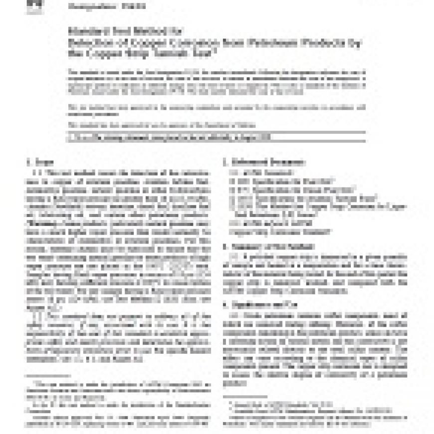 ASTM D130-94(2000)e1 Standard Test Method for Detection of Copper Corrosion from Petroleum Products by the Copper Strip Tarnish Test