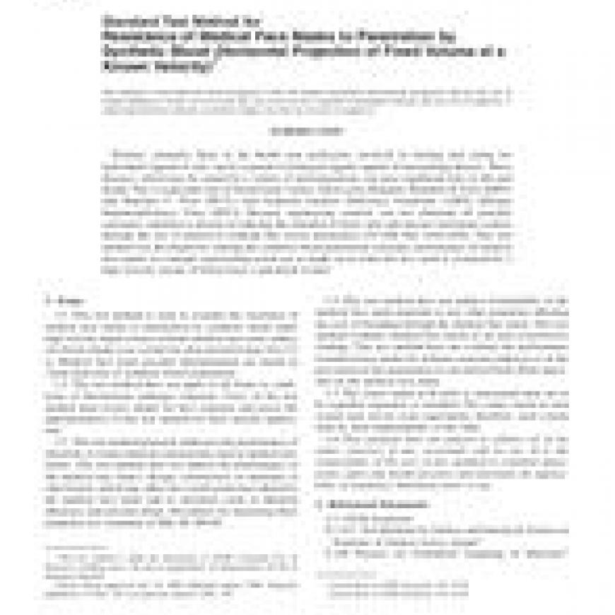 ASTM F1862-00a Standard Test Method for Resistance of Medical Face Masks to Penetration by Synthetic Blood (Horizontal Projection of Fixed Volume at a Known Velocity)