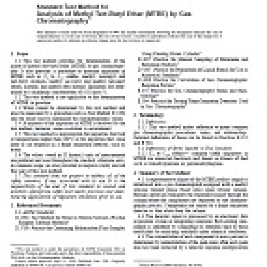 ASTM D5441-98 Standard Test Method for Analysis of Methyl Tert-Butyl Ether (MTBE) by Gas Chromatography