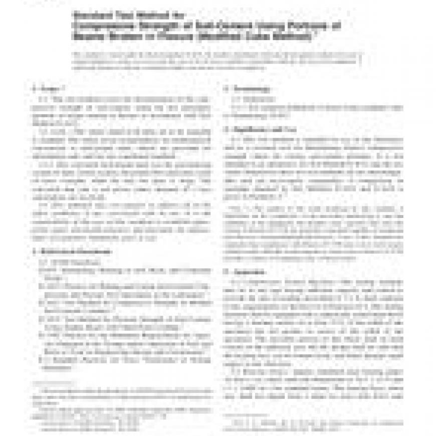 ASTM D1634-00 Standard Test Method for Compressive Strength of Soil-Cement Using Portions of Beams Broken in Flexure (Modified Cube Method)