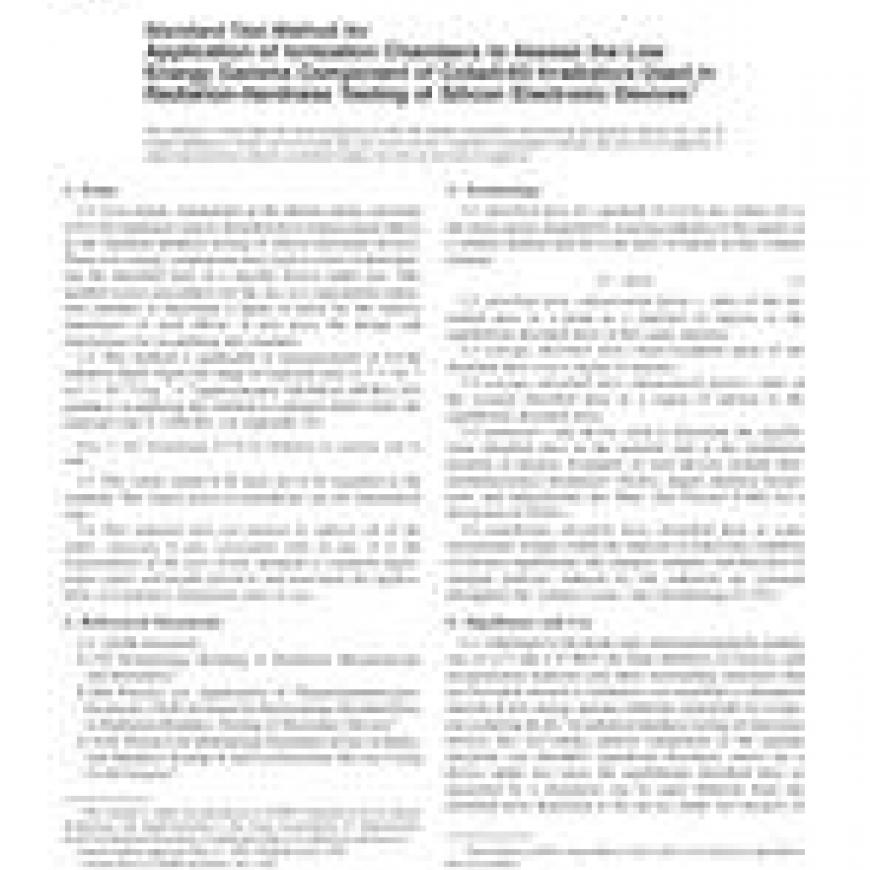 ASTM E1250-88(2000) Standard Test Method for Application of Ionization Chambers to Assess the Low Energy Gamma Component of Cobalt-60 Irradiators Used in Radiation-Hardness Testing of Silicon Electronic Devices
