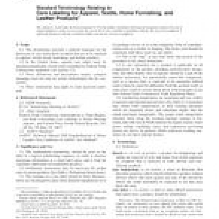ASTM D3136-00 Standard Terminology Relating to Care Labeling for Apparel, Textile, Home Furnishing, and Leather Products