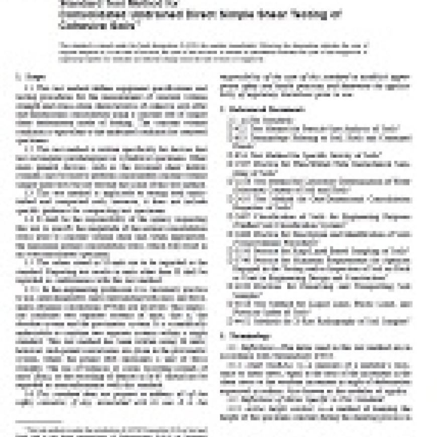 ASTM D6528-00 Standard Test Method for Consolidated Undrained Direct Simple Shear Testing of Cohesive Soils