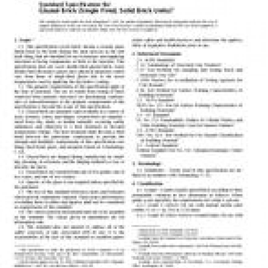 1.1 This specification covers brick, having a ceramic glaze finish fused to the body during the same process as the unit body firing, that are intended for use in masonry and supplying structural or facing components, or both, to the structure. This specification does not cover double-fired glazed brick. Some double-fired decorative glazes have physical properties which vary from those of single-fired glazes due to the lower temperatures used in applying the decorative coating.