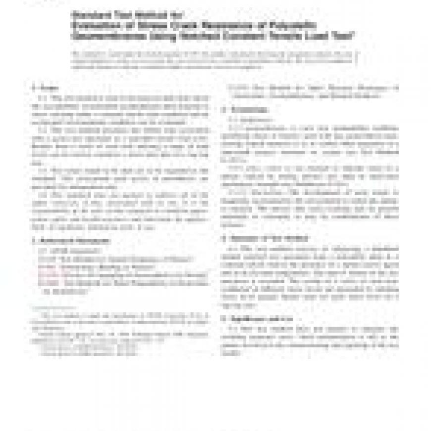 1.1 This test method is used to develop test data from which the susceptibility of polyolefin geomembrane sheet material to stress cracking under a constant tensile load condition and an accelerated environmental condition can be evaluated.