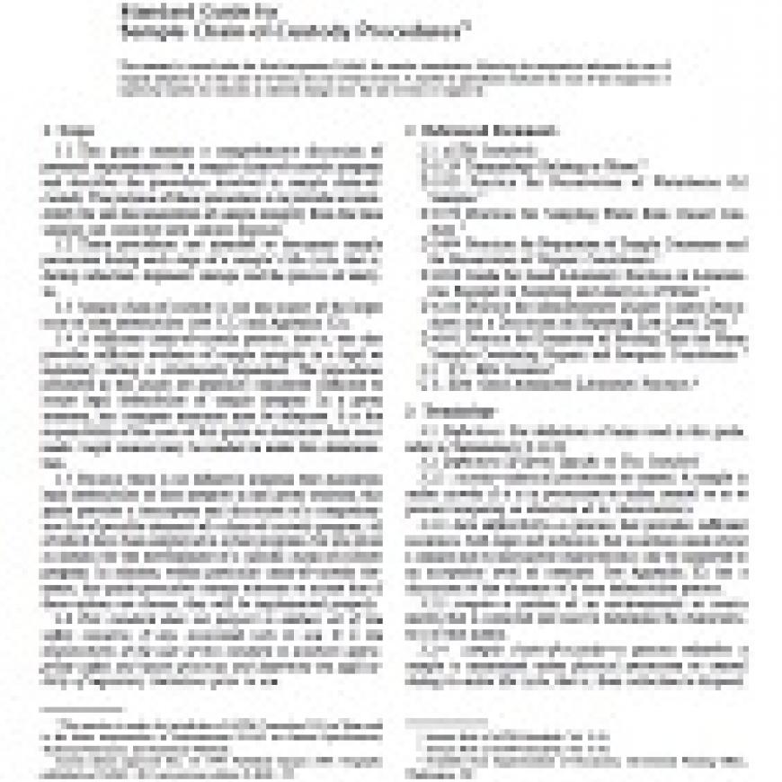 1.1 This guide contains a comprehensive discussion of potential requirements for a sample chain-of-custody program and describes the procedures involved in sample chain-of-custody. The purpose of these procedures is to provide accountability for and documentation of sample integrity from the time samples are collected until sample disposal.