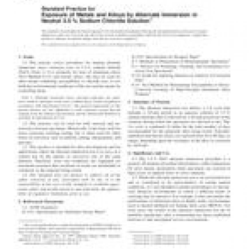 1.1 This practice covers procedures for making alternate immersion stress corrosion tests in 3.5% sodium chloride (NaCl) (Note 1). It is primarily for tests of aluminum alloys (Test Method G47) and ferrous alloys, but may be used for other metals. It sets forth the environmental conditions of the test and the means for controlling them.