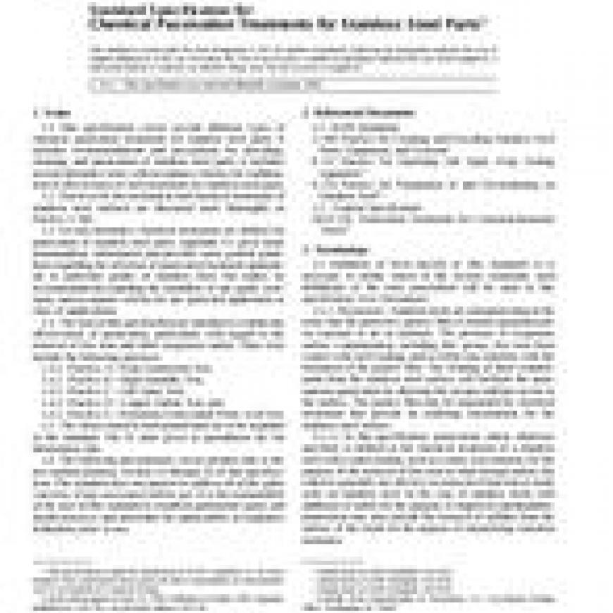 1.3 Several alternative chemical treatments are defined for passivation of stainless steel parts. gives some nonmandatory information and provides some general guidelines regarding the selection of passivation treatment appropriate to particular grades of stainless steel but makes no recommendations regarding the suitability of any grade, treatment, and acceptance criteria for any particular application or class of applications.