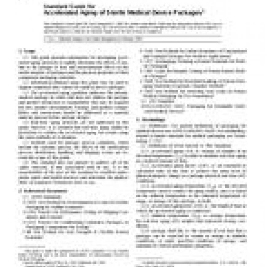 1.1 This guide provides information for developing accelerated aging protocols to rapidly determine the effects, if any, due to the passage of time and environmental effects on the sterile integrity of packages and the physical properties of their component packaging materials.